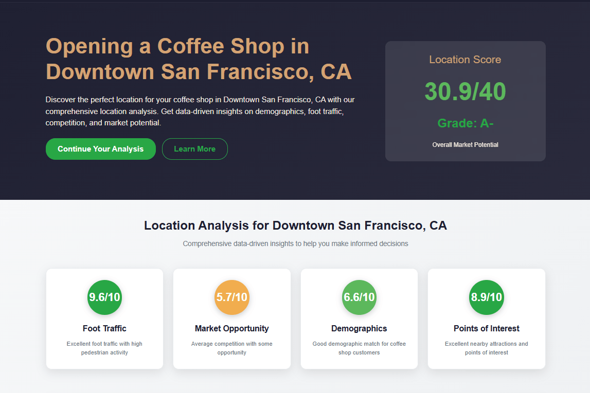 Think of it as a tool to help you cut through the guesswork and make confident decisions about where to open your next coffee shop — so you can focus on what you love: crafting great coffee and creating a welcoming space.